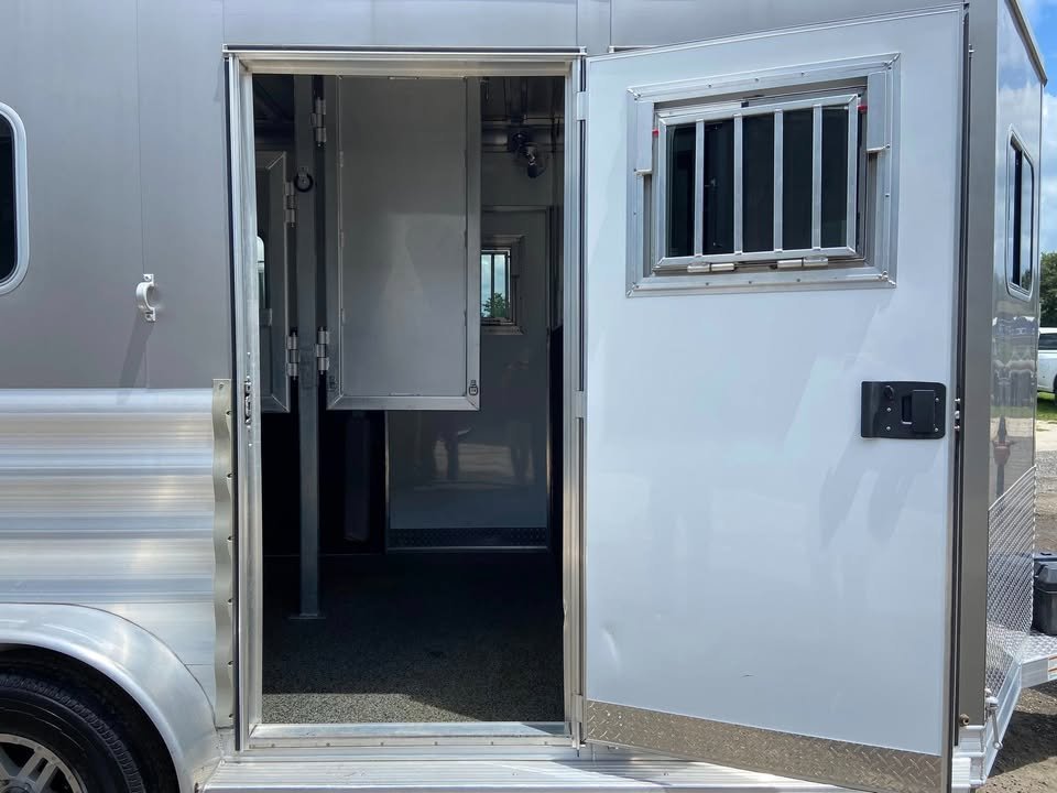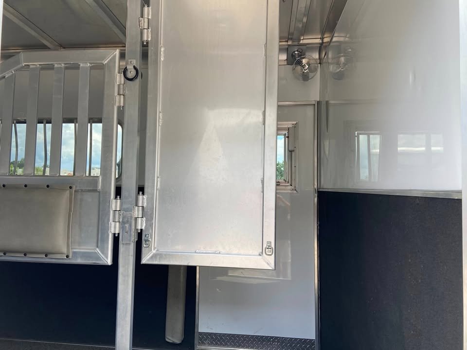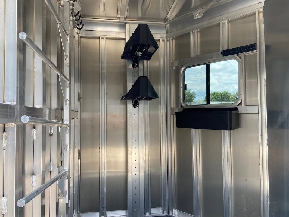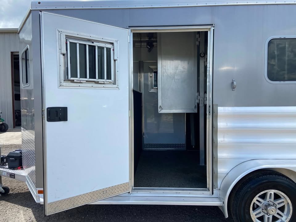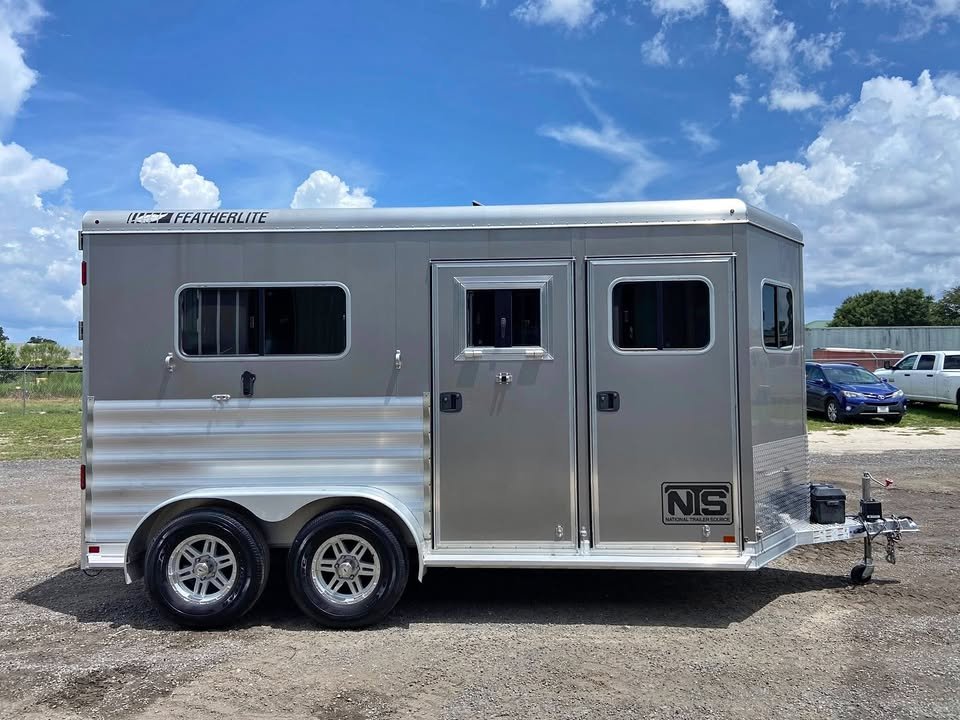 Make transporting your horses safe and hassle-free with the 2024 Used Featherlite 2 Horse Trailer for sale. Designed with precision engineering, this straight load bumper pull trailer ensures a smooth and stable towing experience wherever your journey takes you. Its compact yet spacious design accommodates two horses comfortably, making it a practical choice for equestrians of all levels.